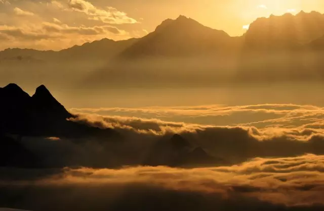 清晨時(shí)分的,霧氣彌漫,水霧如海浪般翻卷水面;午后的湖面,則平靜如鏡,只有偶爾的微風(fēng)在輕劃著漣漪;待到傍晚時(shí),夕陽(yáng)大筆一揮,灑下點(diǎn)點(diǎn)金光,木格措又絢麗得仿若鑲了金邊。