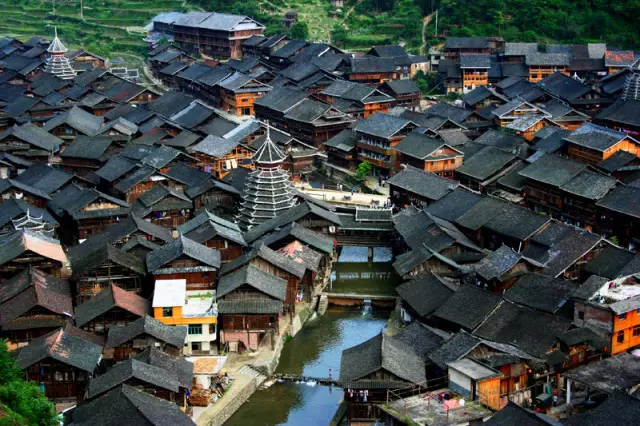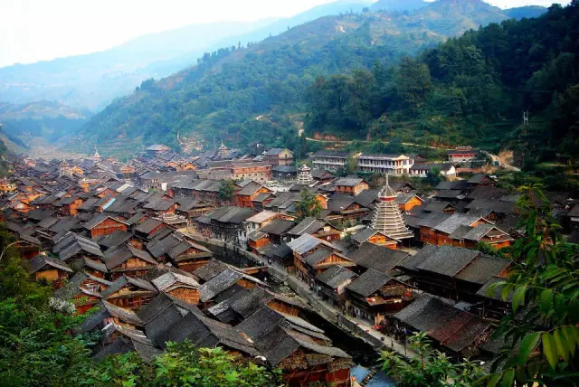 站在山頂,你可以看到層次分明的梯田之中,一座座吊腳屋密集而又整齊的分布著,清一色的黑瓦頂,成了青山綠水間一道最耀眼的風(fēng)景線。