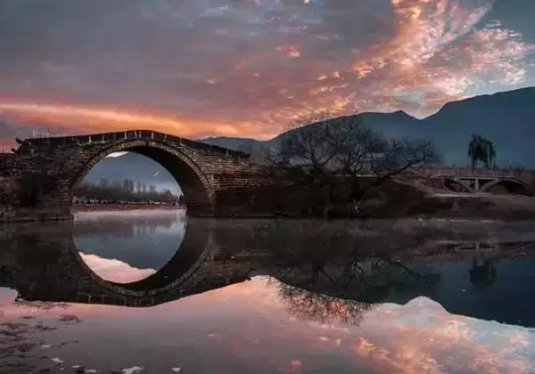 小橋流水的不只是江南,還有沙溪的玉津橋。白天,澄澈的沙溪倒映著藍(lán)天白云,玉津橋與它的影子,連成了一個(gè)完滿的圓。而落日余暉下,更是美若畫卷。