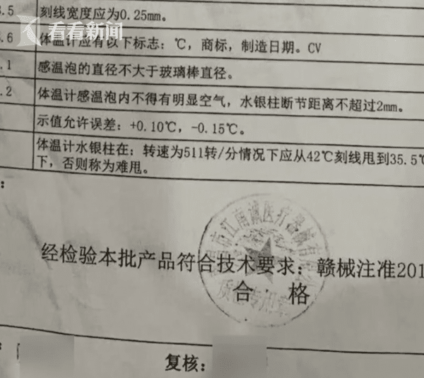 目前,江先生已經(jīng)經(jīng)由浙江市場(chǎng)監(jiān)管部門,對(duì)涉事體溫計(jì)進(jìn)行鑒定。